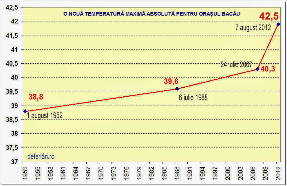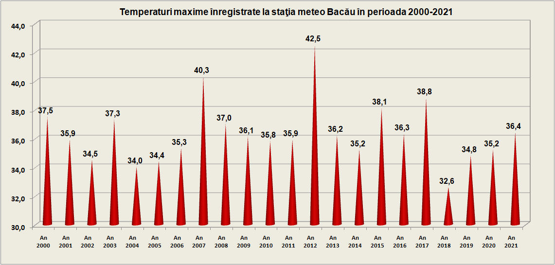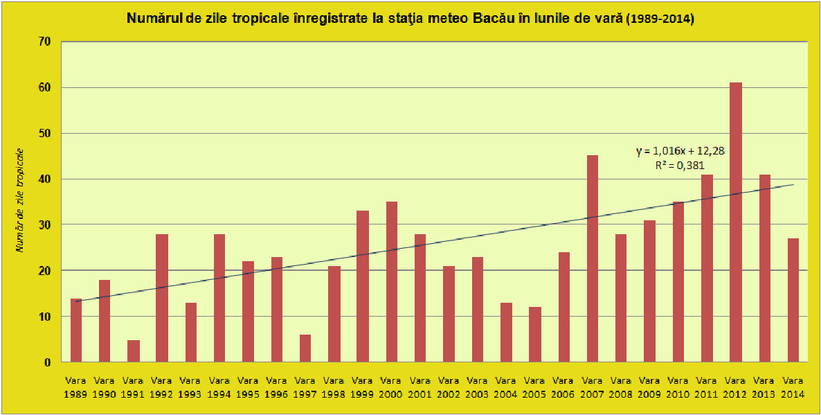 Este o certitudine că schimbările climatice pe care le traversăm ne vor aduce veri din ce în ce mai toride şi mai secetoase. O analiză făcută anul trecut pentru oraşul Bacău (click aici) demonstrează trendul ascendent al acestui fenomen cu impact negativ asupra unui întreg spectru de interacţiuni naturale, sociale şi economice: