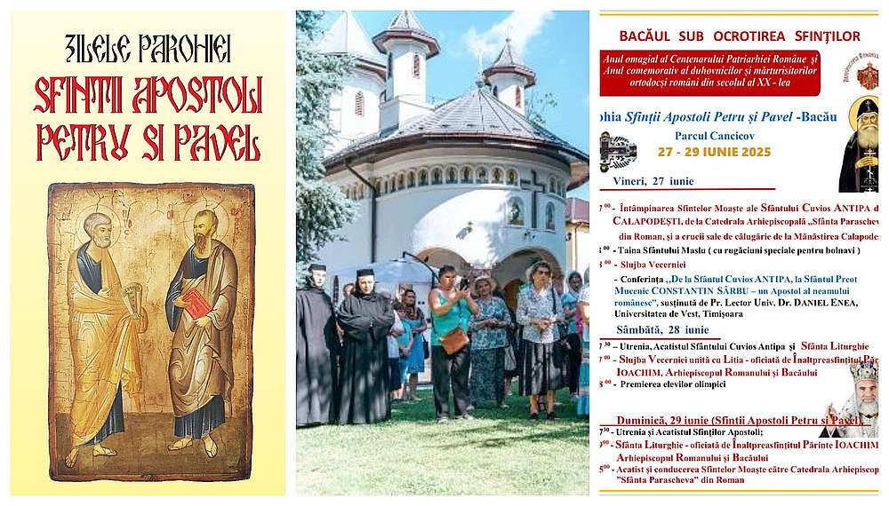 În perioada 27-29 iunie 2025, băcăuanii vor avea ocazia de a participa la un inedit și multiplu eveniment cultural-duhovnicesc ce se va desfășura la biserica „Sfinții Apostoli” din Bacău, sub titlul ”Bacăul sub ocrotirea Sfinților”, în cadrul mai larg al programului eparhial cu același nume.