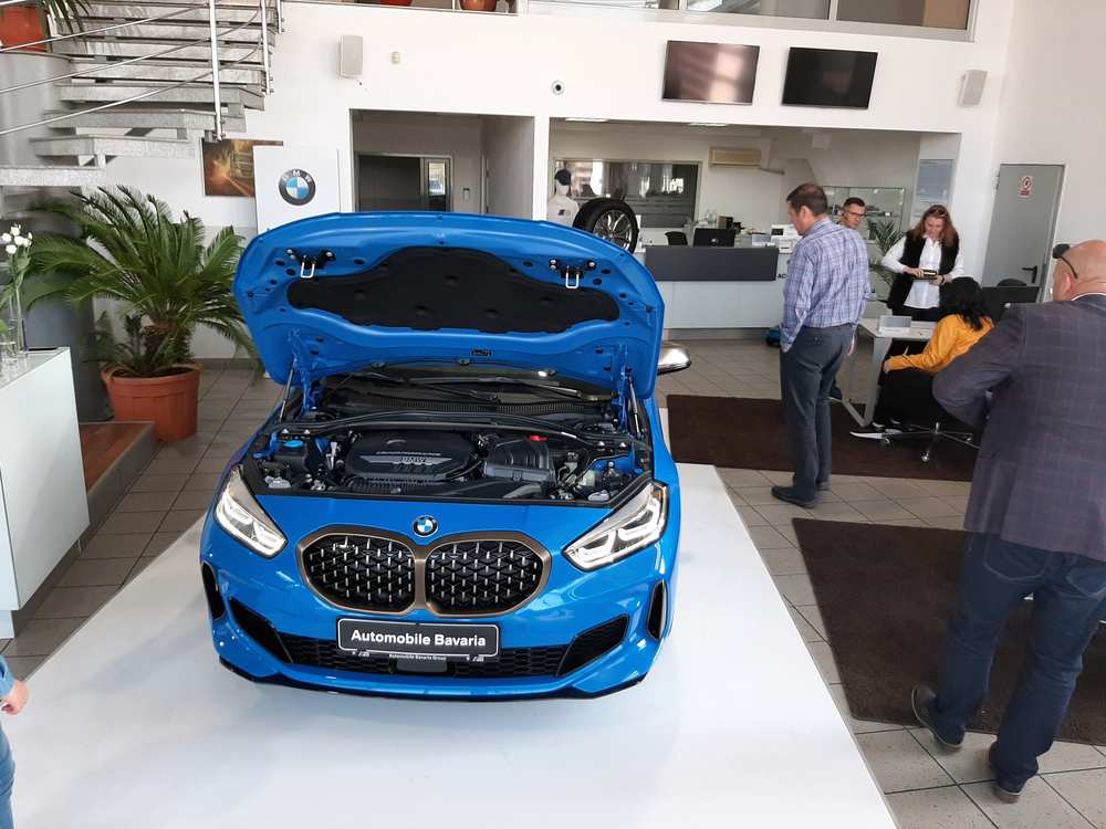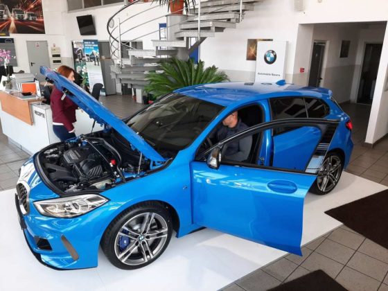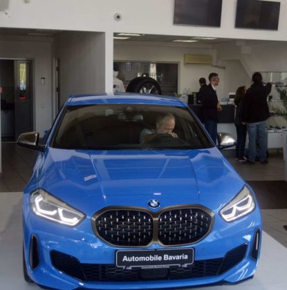 „Față de vechiul model, noutatea absolută este faptul că are transmisie pe puntea față, ceea ce a dus la creșterea spațiului interior, avantaj resimțit mai ales la locurile din spate. Opțional, poate fi selectată și transmisia integrală. Modelul expus aici este unul mai special – M135i, considerat, pe bună dreptate, vârful de gamă pentru noul BMW Seria 1, cu transmisie integrală, motor de 2.000 cmc și 306 cai putere. Este, într-adevăr, o mașină foarte puternică, dar și foarte agilă”, a declarat George Mahu, directorul reprezentanței Automobile Bavaria Bacău. Modelul dispune de cel mai puternic propulsor de 4 cilindri cu care marca a echipat un model de serie, astfel că acesta poate atinge suta de kilometri în…4,8 secunde, grație transmisiei Steptronic sport, a diferenţialului autoblocant Torsen faţă şi tracţiunii integrale.