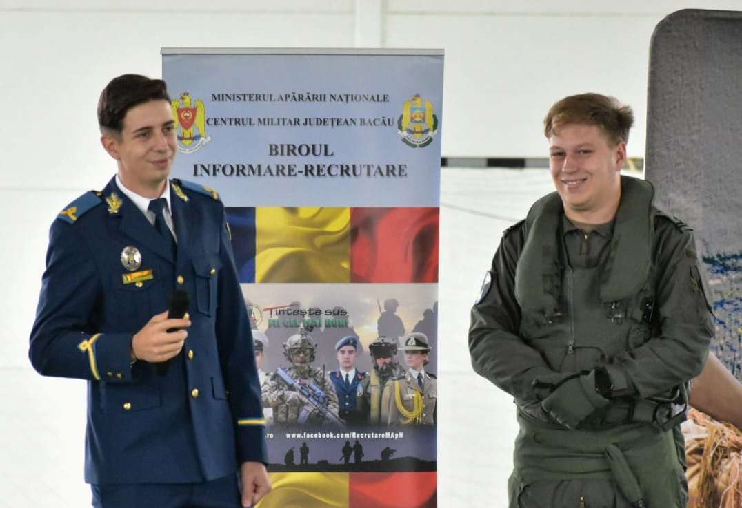 Manifestările continuă mâine la Sala Municipală „Carom” din Onești, unde militarii vor aduce noi surprize și prezentări captivante pentru elevi. De asemenea, între 21 și 23 octombrie, campania „Ziua Armatei României în școli” se va extinde și în orașul Iași, unde piloții din Escadrilele 951 Aviație Instrucție Avansată și 952 Elicoptere SOCAT vor continua să inspire tinerii.