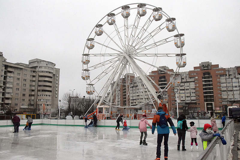 Băcăuanii au ieșit duminică la plimbare, prin zonele verzi ale orașului. Să se bucure de amenajările care există. Dar tot cu privirea în pământ și măcinați de gânduri, cu grija la copiii care râd și se joacă inocenți. Temperaturi de primăvară, în mijlocul iernii. La Insulă, un pescar își încearcă norocul. Parcul Catedralei este doar loc de trecere și de făcut, cu evlavie, cruci în dreptul grupului statuar. Animație este în aproperea fostului Teatru de păpuși, unde s-a amenajat un mic patinoar. Trenulețul își urmează traseul iar roata mare așteaptă clienți. În Parcul Cancicov, liniște.