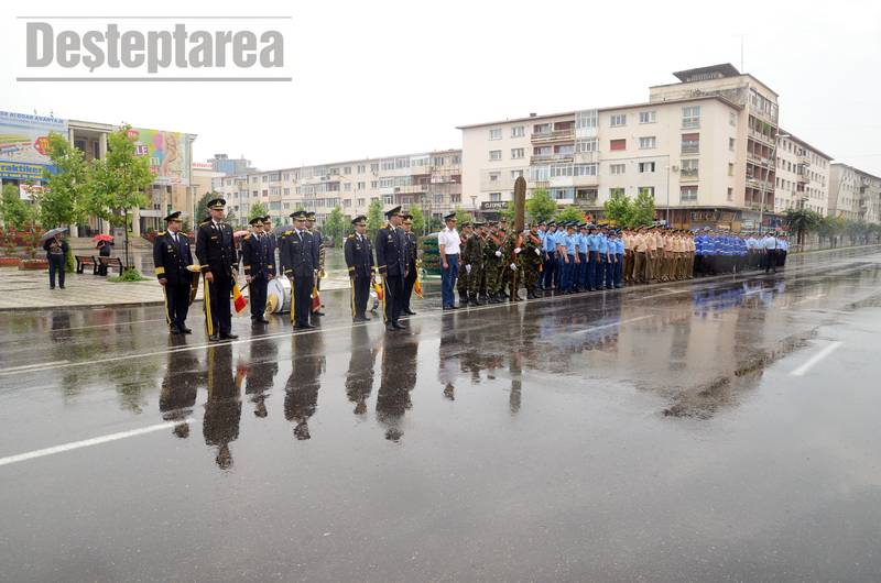 Drapelul tricolor a fost ridicat pe catargul din fata Prefecturii in acordurile imnului national interpretat de fanfara garnizoanei si, in premiera, de un invitat care, anul acesta, a fost profesorul de canto Florin Blaj, de la Colegiul de Arta.