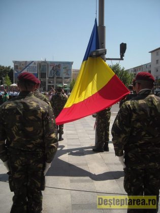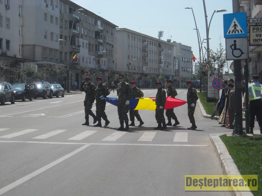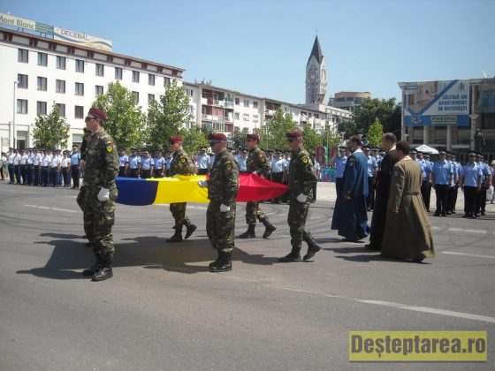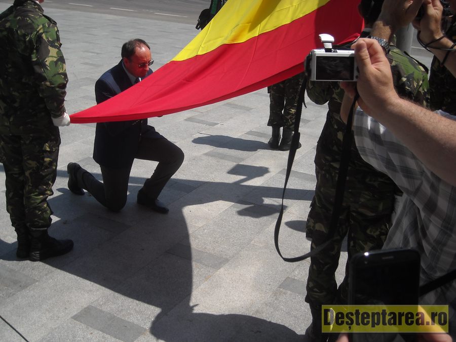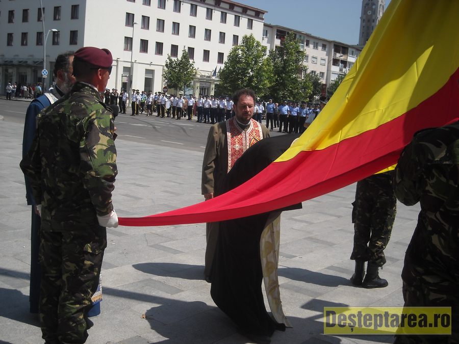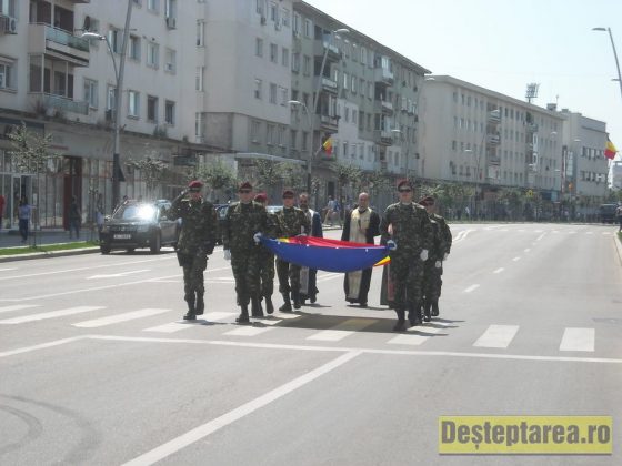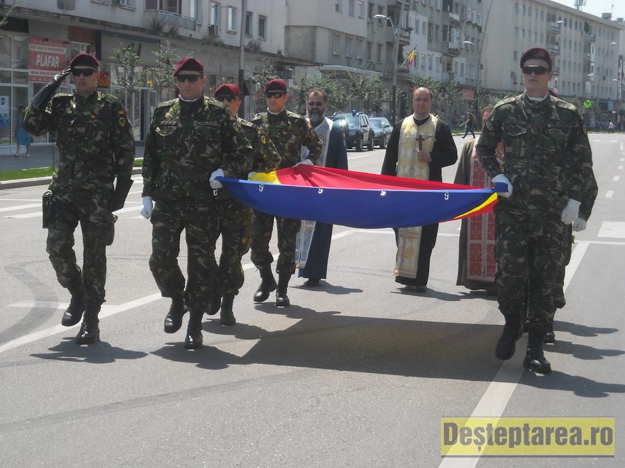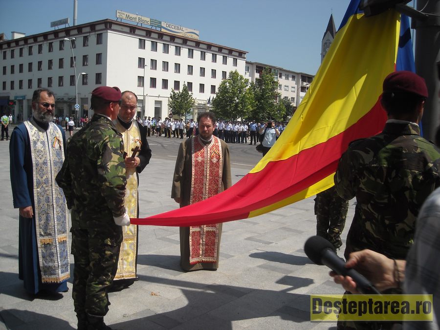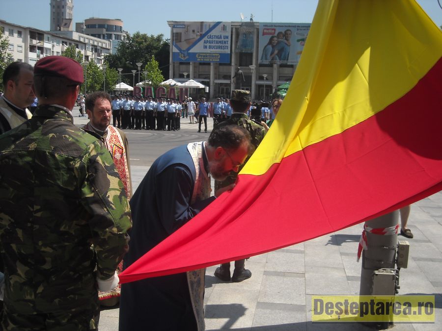 După luările de cuvânt a urmat primirea drapelului național al României, care, cu o seară înainte a fost sfințit de către preotul militar Ion Roncea și ținut în biserică. Garda purtătoare a drapelului a fost formată din militari ai Batalionului 630 Parașutiști “Smaranda Brăescu”.