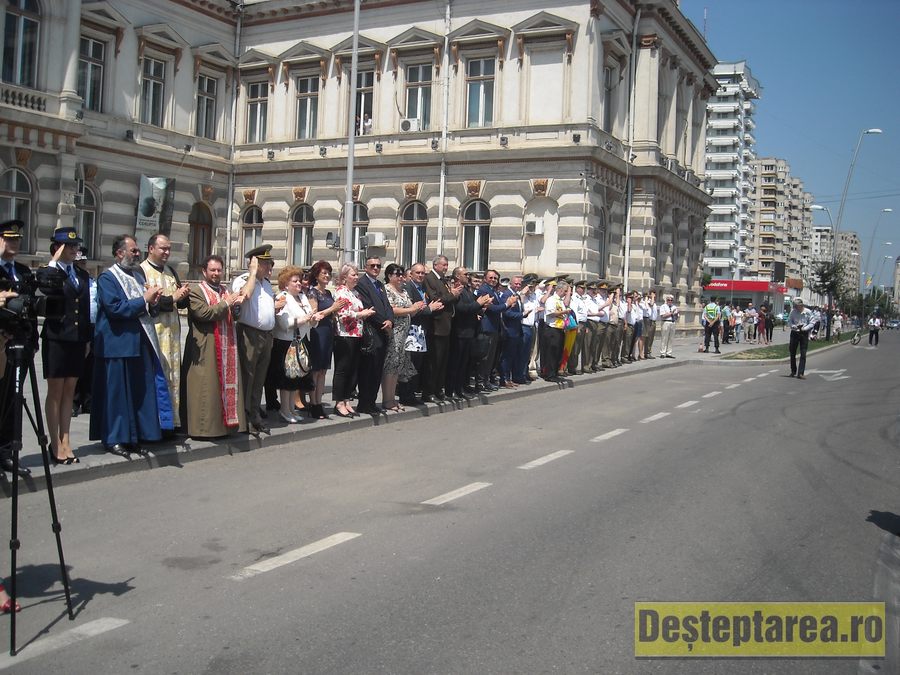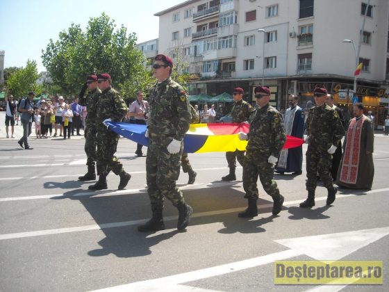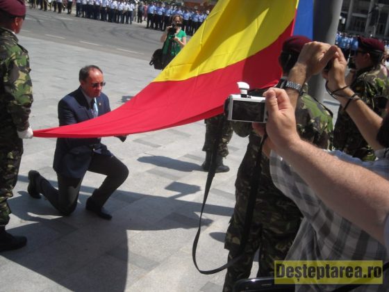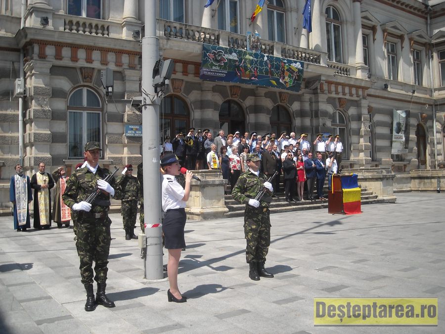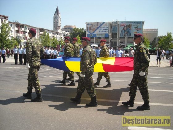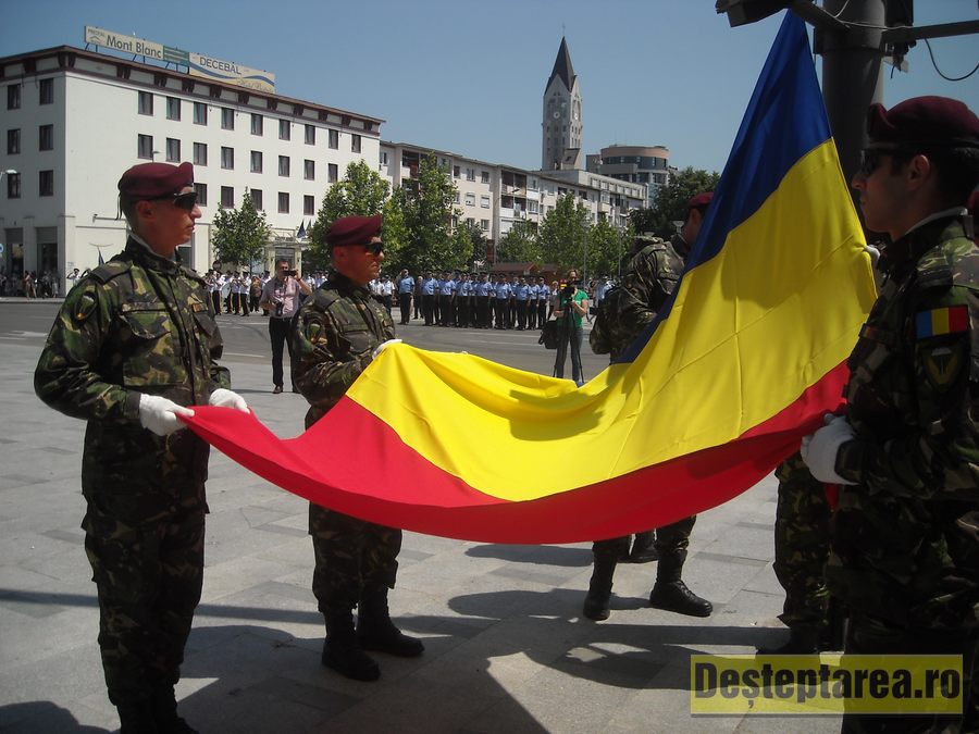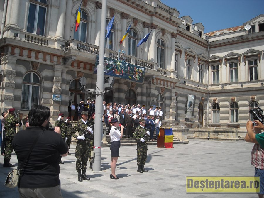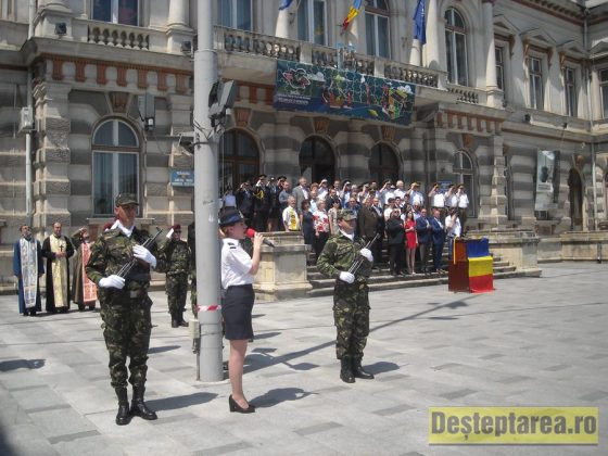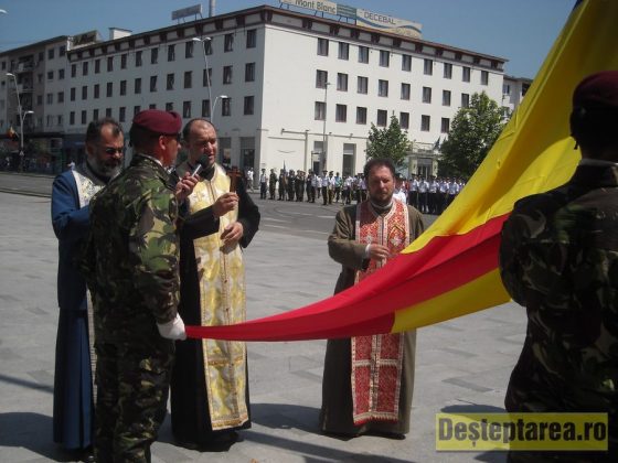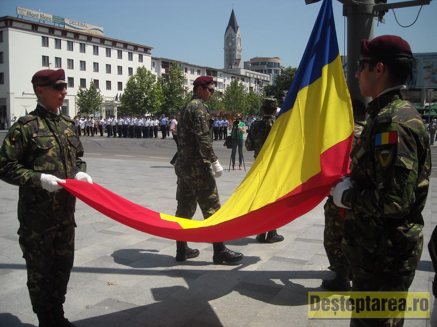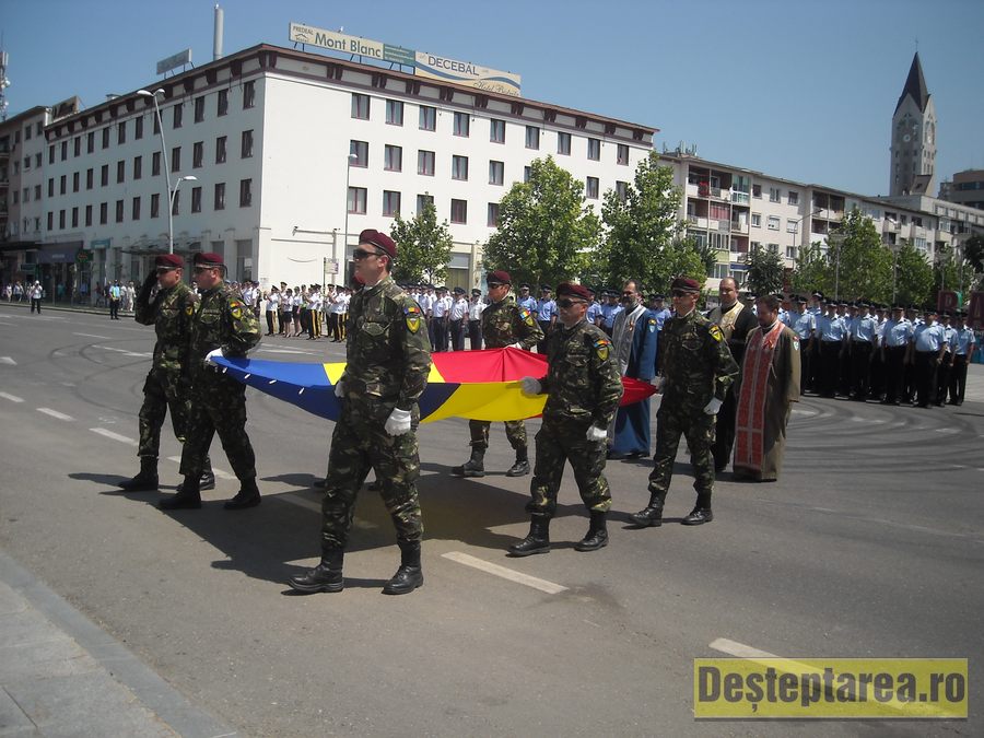 După luările de cuvânt a urmat primirea drapelului național al României, care, cu o seară înainte a fost sfințit de către preotul militar Ion Roncea și ținut în biserică. Garda purtătoare a drapelului a fost formată din militari ai Batalionului 630 Parașutiști “Smaranda Brăescu”.