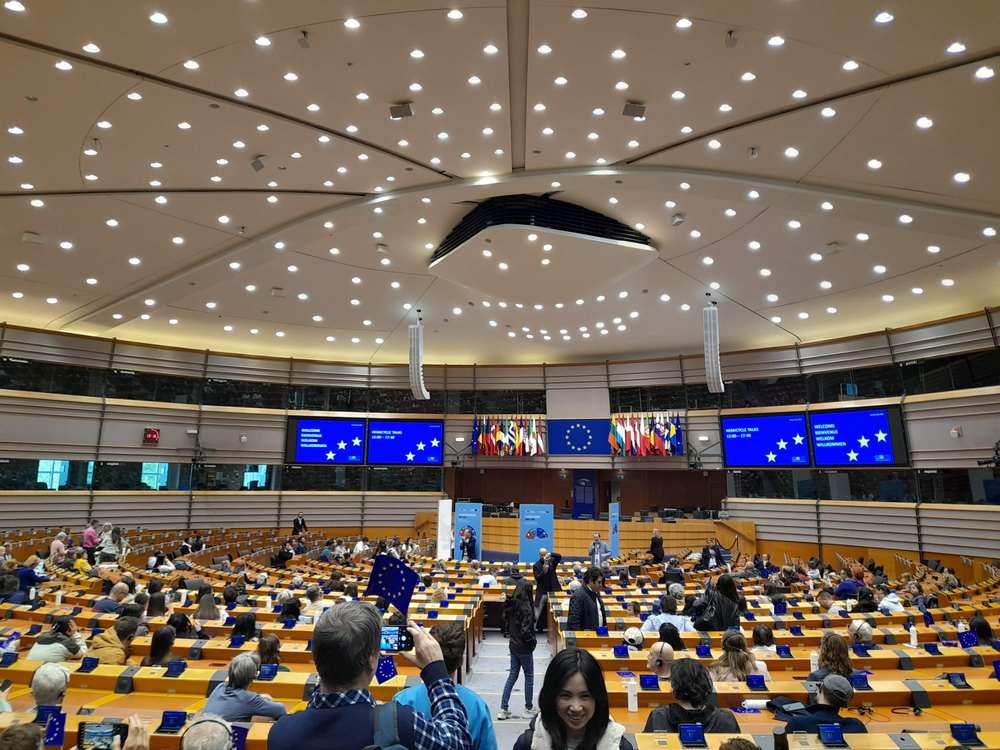 Am vizitat, apoi, Hemiciclul, „inima democrației europene” – o încăpere imensă, circulară, superbă, unde membrii Parlamentului European se întrunesc și dezbat, ulterior votând, aspecte de o importanță semnificativă pentru Europa. Acolo am avut șansa să mă aflu printre câțiva reprezentanți, delegați ai grupărilor politice și persoane care au susținut discursuri despre ce reprezintă și cum funcționează Parlamentul, cine lucrează în cadrul acestuia și procedurile pe scurt, în 4 limbi diferite. Diversitatea i-a oferit zilei un farmec încântător.