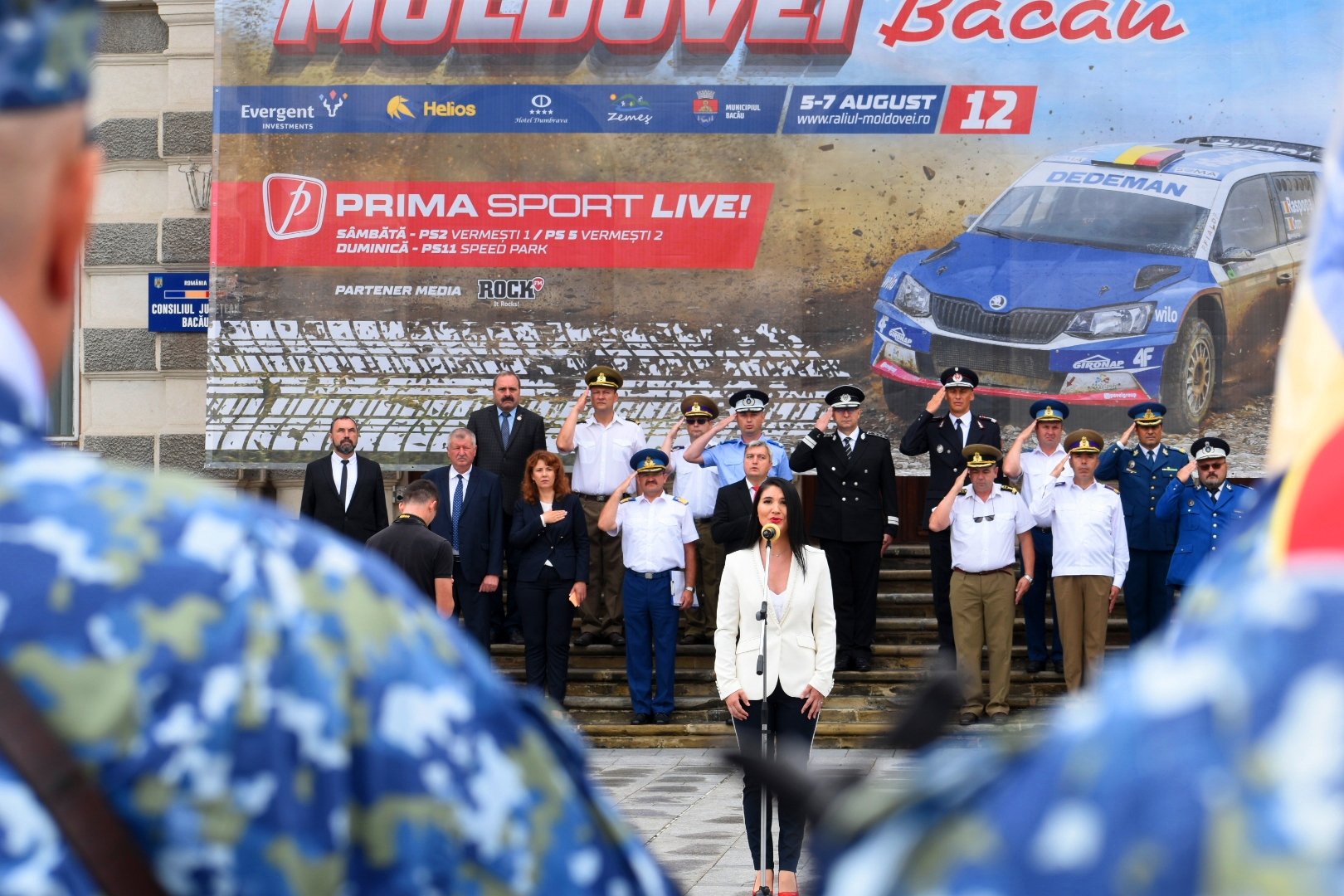În acest context, soprana Daniela-Maria Dumitru, acompaniată de Muzica Militară a Garnizoanei Bacău, sub bagheta dirijorului Valeriu Balan au intonat vocal și instrumental Imnul Național al României.