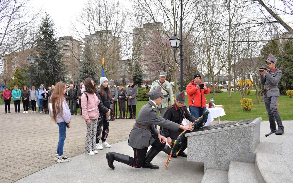 La grupul statuar „România Biruitoare” au venit elevi și profesori de la Colegiile băcăuane „N. V. Karpen”, „Ion Ghica” și „Mihai Eminescu”, dar și de la Școala Gimnazială „Ion Creangă”. Unul dintre organizatori, col. (rtr) Stelian Cojocaru, președintele Asociației Tradiții Militare Românești, a costumat în uniforme specifice Primului Război Mondial un grup de elevi de liceu.