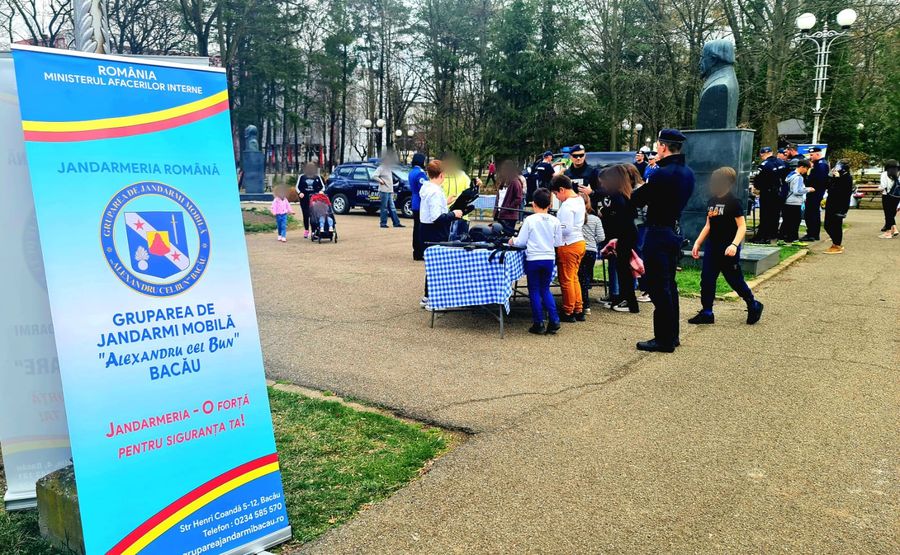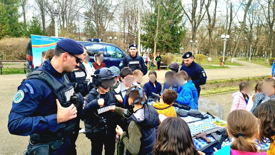 Astăzi, 1 aprilie 2022, în cadrul activităților dedicate aniversării a 172 de ani de la înființarea Jandarmeriei Române, jandarmii din cadrul Inspectoratului de Jandarmi Județean Bacău și ai Grupării de Jandarmi Mobile Bacău au fost prezenți în Parcul Cancicov din Bacău, unde au petrecut câteva ore în compania copiilor care au fost foarte interesați de materialele specifice din dotarea Jandarmeriei, precum și de semnalele acustice și luminoase ale autospecialelor noastre.