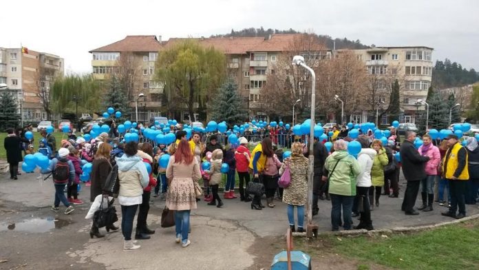 Piata Tricolorului din Bacau a fost, luni, 14 noiembrie, colorata intens de zeci de baloane albastre si galbene impartite trecatorilor de copiii aflati in grija Directiei Generale de Asistenta Sociala si Protectia Copiilor (DGASPC).