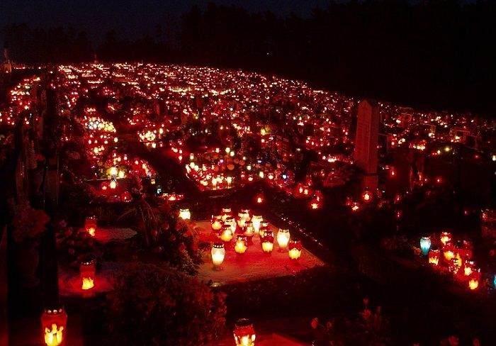 În noaptea dinaintea sau în ziua sărbătorii, cimitirele prind viață într-un mod aparte: sunt luminate de mii de flăcări calde ale lumânărilor. Mormintele sunt curățate, împodobite cu flori proaspete, în special crizanteme, care sunt considerate simboluri ale eternității și purității. Fiecare mormânt spune o poveste, iar familiile se adună, uneori venind de departe, pentru a-i cinsti pe cei dragi.