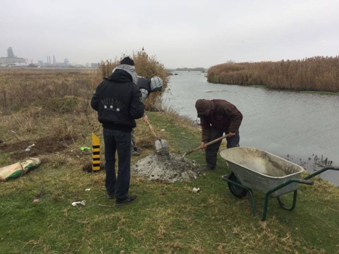 Voluntarii Centrului Regional de Ecologie Bacău au amplasat borne pe lacul Galbeni, pentru a evidenția în teren limitele zonei de pescuit.